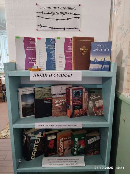 В преддверии этого дня в Ребольской сельской библиотеке подготовлена книжная выставка «Люди и судьбы». Книги, представленные на выставке, расскажут о том, как зарождался Большой террор. О страшных 1937-1938 годах XX века, так называемом Большом терроре, об издевательствах и насилиях в застенках НКВД над гражданами СССР — будь то представители православного духовенства, советские интеллигенты, офицеры, служащие — в своих воспоминаниях, мемуарах расскажут сами обвиняемые — чудом выжившие узники ГУЛАГа, или их потомки по сохранившимся в архивах бесценным свидетельствам прошлого. Это страница истории нашей страны, горькая и страшная. И её надо знать и о ней надо помнить, чтобы извлечь из неё уроки во имя будущего.