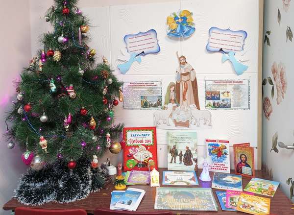 Так же в библиотеке организована красочная выставка рождественской атрибутики.
