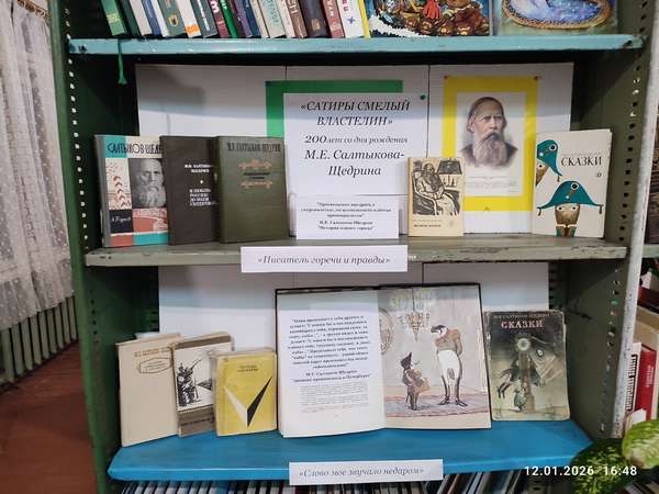 В Ребольской сельской библиотеке открылась книжная выставка «Сатиры смелый властелин», приуроченная к 200-летию со дня рождения великого русского писателя Михаила Евграфовича Салтыкова-Щедрина. На ней представлены самые известные произведения Салтыкова-Щедрина: «История одного города», «Господа Головлевы», «Пошехонская старина», сказки и др., а также биографические исследования и воспоминания современников.