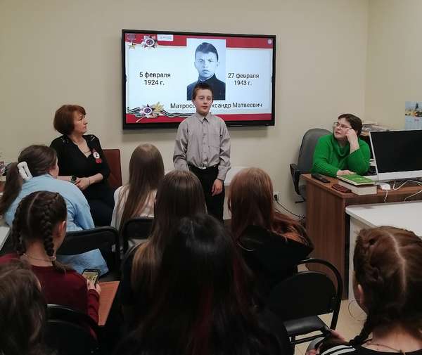 В преддверии праздника Победы в детском отделе Муезерской модельной библиотеки для учащихся пятого класса (классный руководитель Банникова О.А.) прошёл час патриотического воспитания «В сражениях за Победу». Ребята познакомились с презентацией «Подвигу жить в веках!» о юных героях Великой Отечественной войны - Зое Космодемьянской, Лёне Голикове, Аркадии Каманине, Володе Дубинине, Александре Матросове. Также библиотекарь провела обзор по книгам об этих мужественных людях.