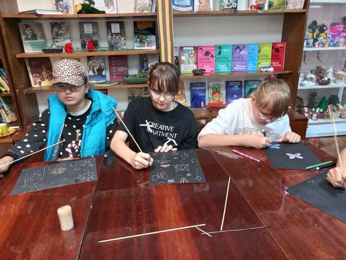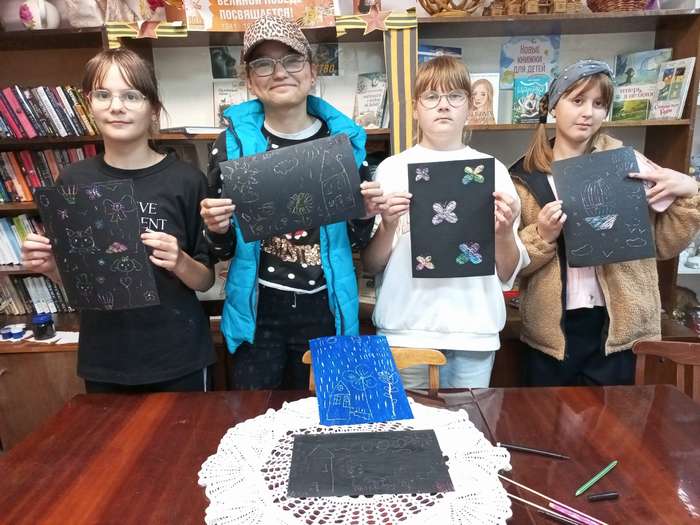 В Суккозерской сельской библиотеке на мастер-классе ребята познакомились с удивительной, завораживающей техникой рисования «граттаж».